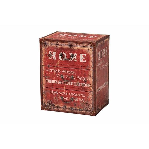 Imbue your space with a graceful charm while coordinating your belongings with the lovely Lorand Storage Trunk. Crafted in China, this vintage inspired piece consists of a sturdy wood frame wrapped in durable faux leather. Three drawers embellished with molded metal handles offer organized storage while its compact size blends well with any layout. The Lorand will arrive fully assembled and exhibits a weathered design reminiscent of an antique with a storied history. Carrying a mystique of antiquity, the Lorand Storage Trunk radiates enduring beauty.