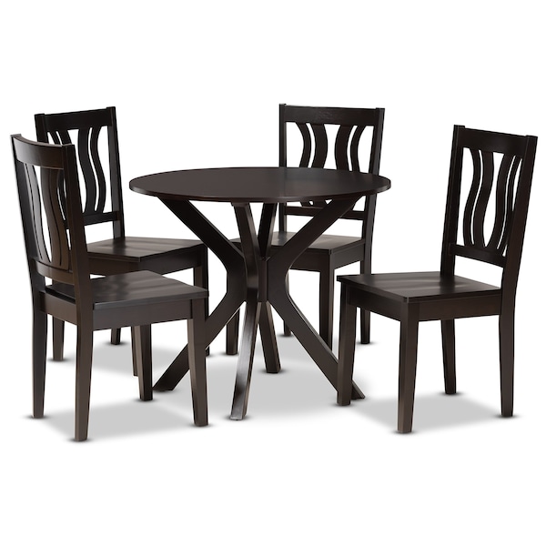 Mare Modern and Contemporary Transitional Dark Brown Finished Wood 5-Piece Dining Set