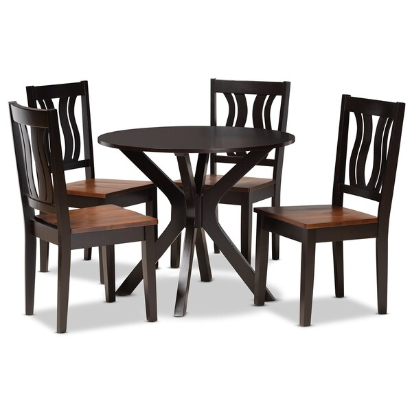 Mare Modern Two-Tone Dark Brown and Walnut Brown Finished Wood 5-PC Dining Set (Discontinued)