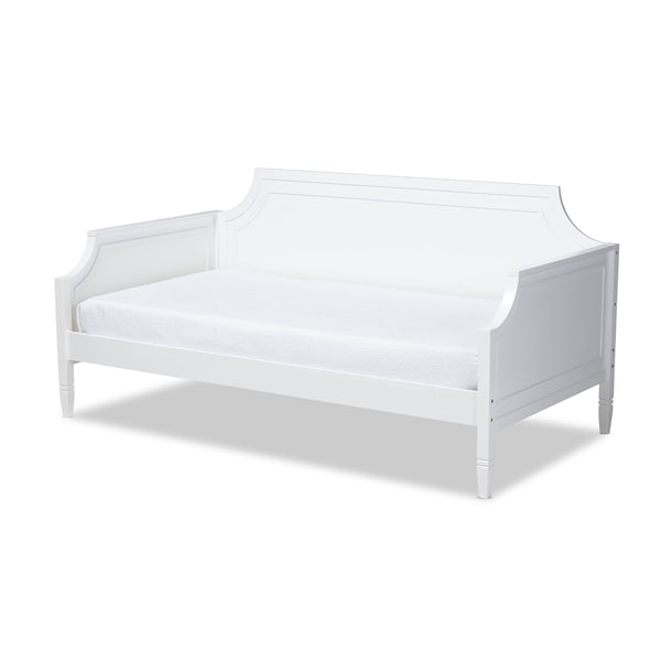 Hosting overnight guests is easy with the Mariana trundle. The Mariana is fitted with four wheels to function as a roll-out trundle underneath a twin size bed frame. Its traditional design features two imitation drawer faces with gold-tone metal ring pulls. Constructed from wood, the Mariana displays an elegant white finish that complements many bed colors. This trundle is designed for use with one twin size mattress. The Mariana trundle requires assembly.