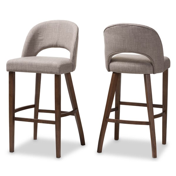The Melrose bar stool is both practical and incredibly stylish. The mid-century modern-inspired design is clear to see in the curved, arched, and open back of the stool. A solid, walnut-finished rubberwood frame makes the Melrose sturdy and durable. The light grey fabric upholstered bar stool features a foam padded seat and symmetrical stretchers. The smooth arch of the chair back, with its curved, open design, is sure to wow your guests. Add a modern yet retro flair to your dining room, living room, or other shared space. The bar stool requires assembly.
