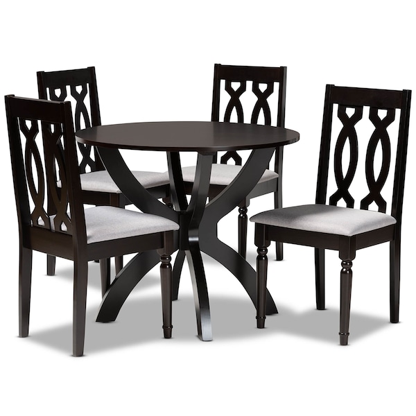 Mona Grey Upholstered and Dark Brown Finished Wood 5-Piece Dining Set