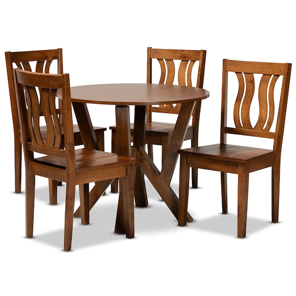 Noelia Modern and Contemporary Transitional Walnut Brown Finished Wood 5-Piece Dining Set