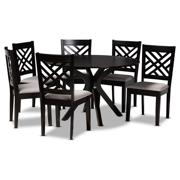 Norah Grey Upholstered and Dark Brown Finished Wood 7-Piece Dining Set