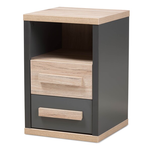 Pandora Modern Dark Grey and Light Brown Two-Tone 2-Drawer Nightstand