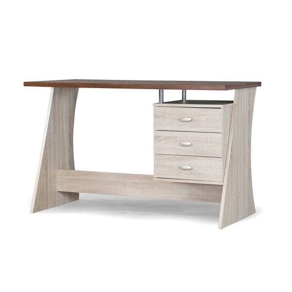 Practical doesn’t have to mean plain. Our Parallax Writing Desk is proof-positive. Contemporary from top to bottom (and sleekly angled side to side), this discount desk offers an element of the unexpected with its contrasting geometry paired with a two-toned hue. Angled sides stand out against rectangular drawers for a dash of dissonance.