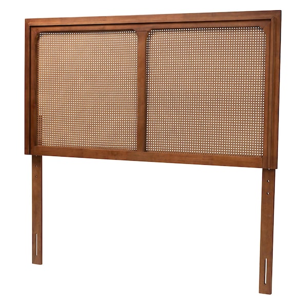 Prewitt Mid-Century Modern Ash Walnut Finished Wood Queen Size Headboard with Rattan (Discontinued)