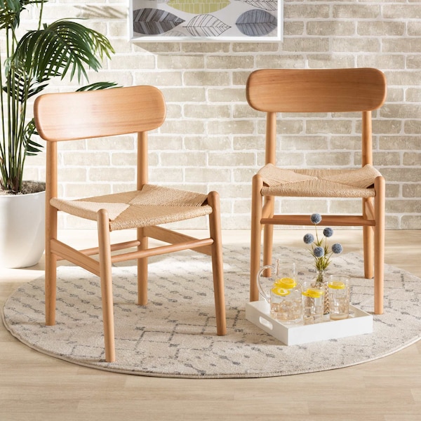 Raheem Mid-Century Brown Hemp and Wood Dining Chair Set PR (Discontinued)