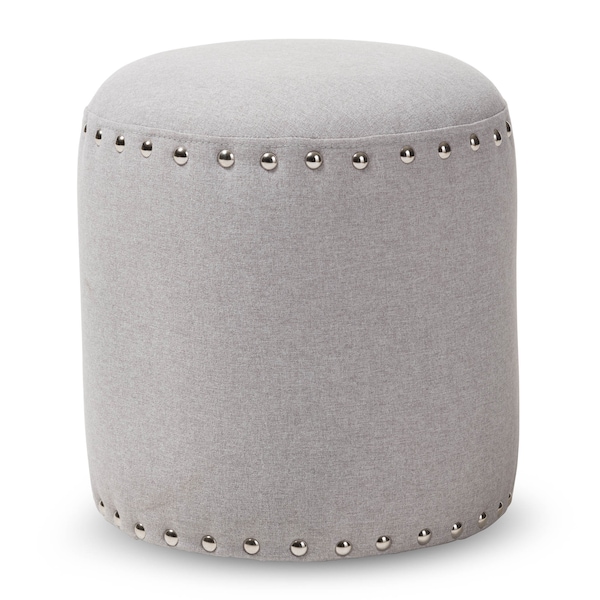 Rosine Modern Light Grey Upholstered Nail Trim Ottoman