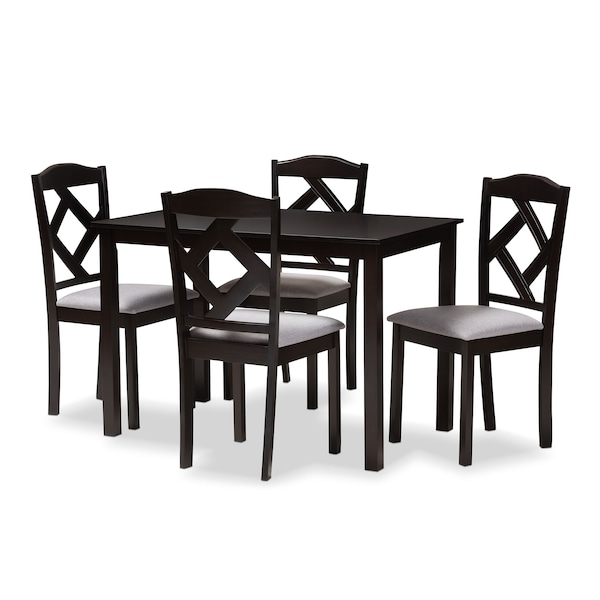 Ruth Espresso Finished and Grey Upholstered 5-Piece Dining Set