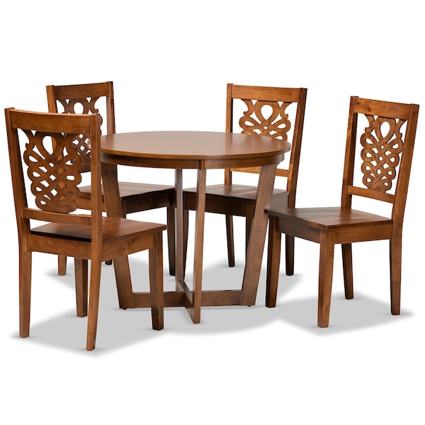 Salida Modern and Contemporary Transitional Walnut Brown Finished Wood 5-Piece Dining Set