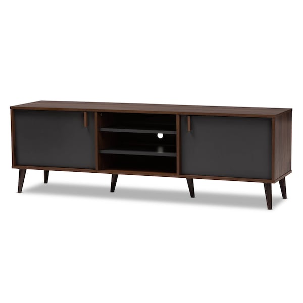 Samuel Mid-Century Modern Brown and Dark Grey Finished TV Stand