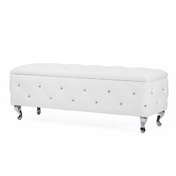 Seine White Leather Contemporary Storage Ottoman