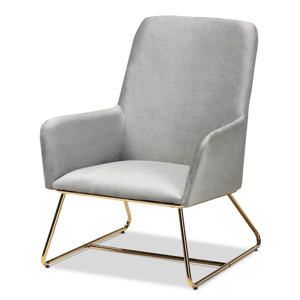 Sennet Grey Velvet Upholstered Gold Finished Armchair