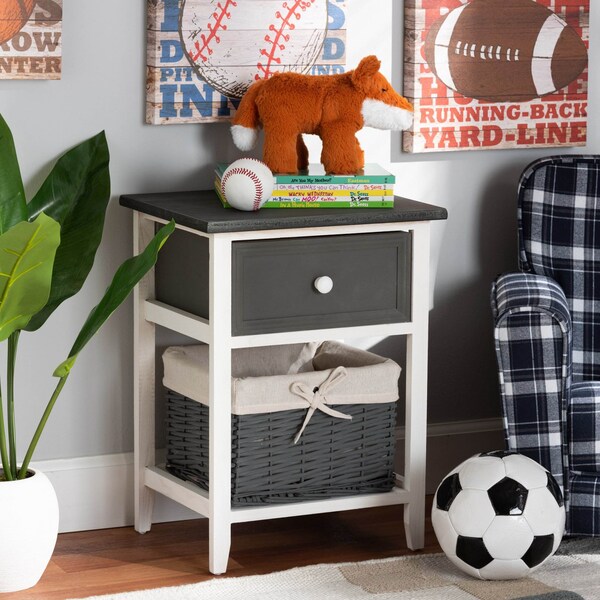 Shadell Modern Transitional Two-Tone Wood 1-Drawer Storage Unit with Basket-Dark Grey and White