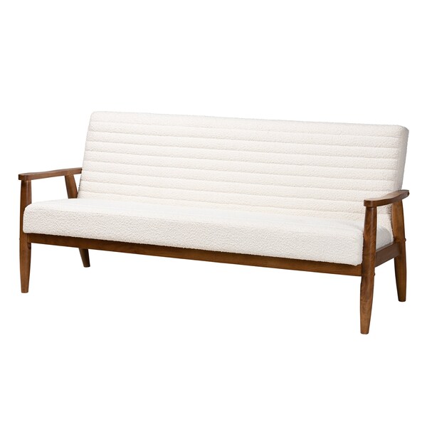 Stratton Mid-Century Modern Cream Boucle Fabric and Walnut Brown Finished Wood Sofa (Discontinued)