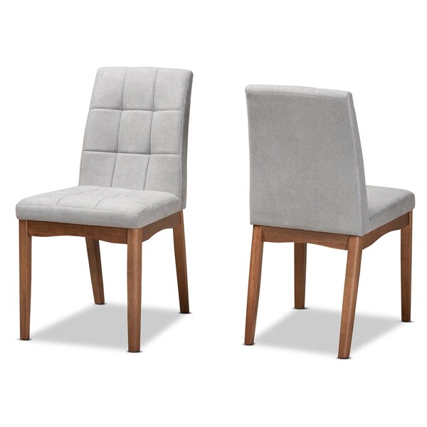 Tara Mid-Century Transitional Light Grey Fabric and Walnut Brown Finished Wood 2-PC Dining Chair Set (Discontinued)