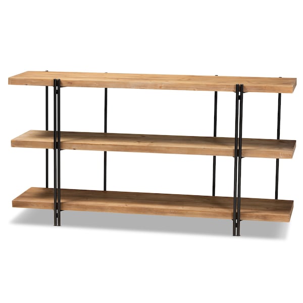 Eye catching and equipped with fantastic utility, the Tarah console table enhances any entrance or walkway. Made in China, the Tarah is comprised of a black finished metal frame fitted with three natural brown finished wood shelves. The spacious shelves provide ample surface area for decorations and household essentials. Requiring assembly, its minimalist frame lends a unique style that blends well with modern room layouts. Versatile and visually stunning, the Tarah console table is an exquisite addition to any space.