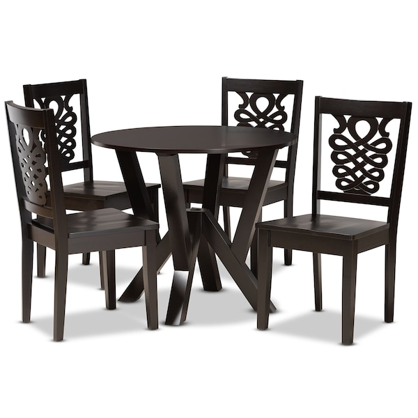 Valda Modern and Contemporary Transitional Dark Brown Finished Wood 5-Piece Dining Set