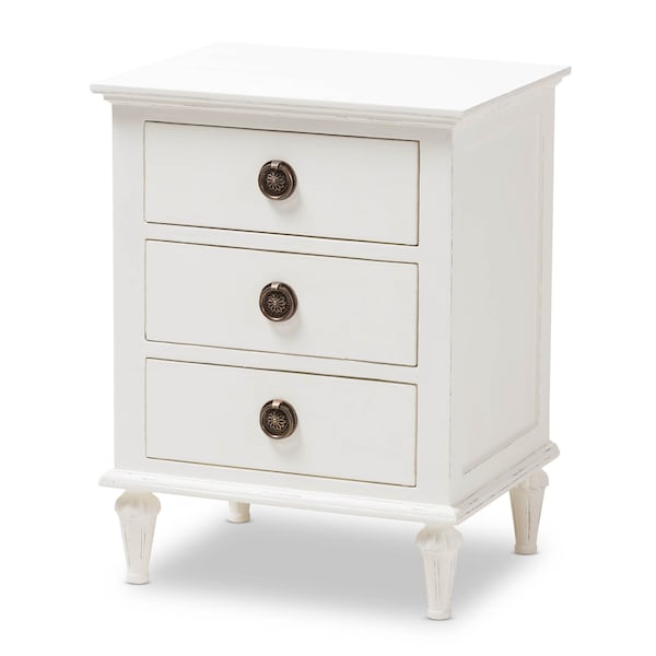 Venezia French-Inspired Rustic Whitewash Wood 3-Drawer Nightstand