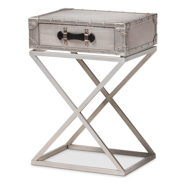 William Silver Metal 1-Drawer Nightstand