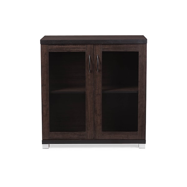 Zentra ModernDark Brown Sideboard Storage Cabinet with Glass Doors
