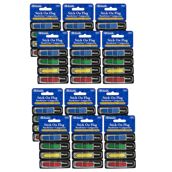 Self-stick flags adheres securely and allows repositioning with ease. Durable material prevents wear and tear from repeated handling and use. Features durable perforated cardboard dispensers with plastic cover. Colors include: Neon Blue, Neon Green, Neon Yellow and Neon Red. Measures 0.5" x 1.7". Each dispenser includes 25 flags. Each pack includes 4 dispensers for a total of 100 flags. Sold as 12 packs for a total of 1200 flags.