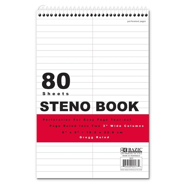 6 x 9 in. 80 Sheets White Paper Gregg Ruled Steno Book, 48PK