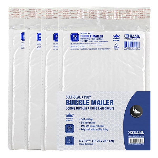 6 x 9.25 in. No.0 Poly Bubble Mailer, 4PK (Discontinued)