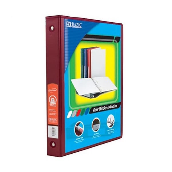 BAZIC 1 Burgundy 3-Ring View Binder w/ 2-Pockets, 12PK