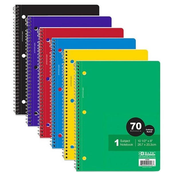 Bazic 558 C/R 70 Ct. 1-Subject Spiral Notebook Case of 24