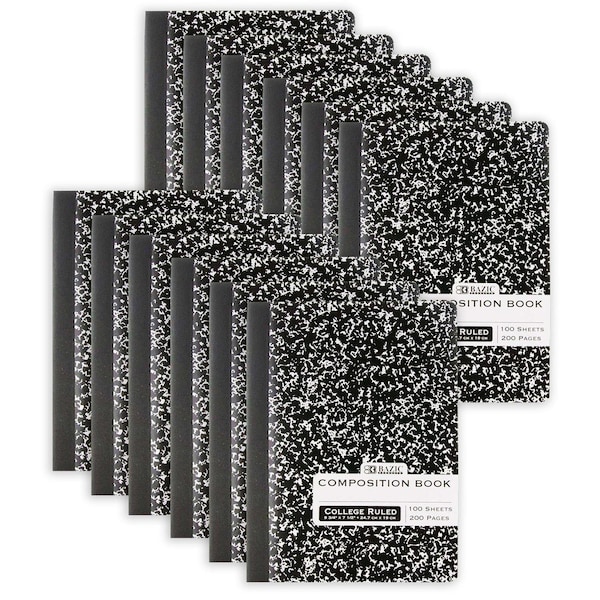 Composition Book, College Ruled, Black Marble, 100 Sheets, 12PK