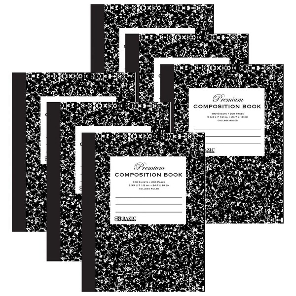 - SIMPLY NOTETAKING. Black marble composition notebooks come with 100 sheets of college-ruled paper. Ready for any assignment and take it with you on the go! Overall Size: 9.75" x 7.5".