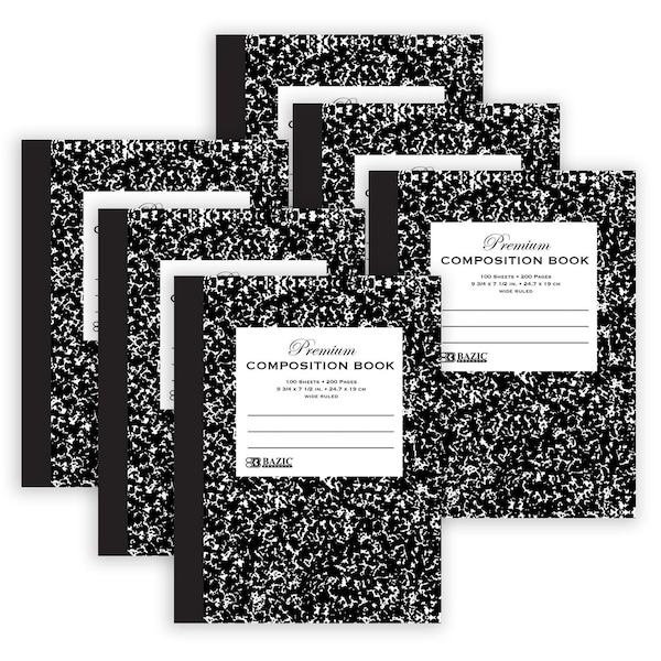- SIMPLY NOTETAKING. Black marble composition notebooks come with 100 sheets of wide-ruled paper. Ready for any assignment and take it with you on the go! Overall Size: 9.75" x 7.5".