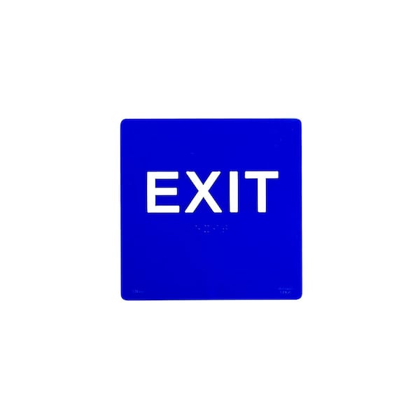 6 x 6 Exit Text, Square Print, 1/8 Acrylic With Braille, Blue
