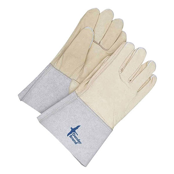 Cowhide Welder with 5 in Cuff, Gauntlet Cuff, Straight Thumb, Gray/Tan, S, 1 PR
