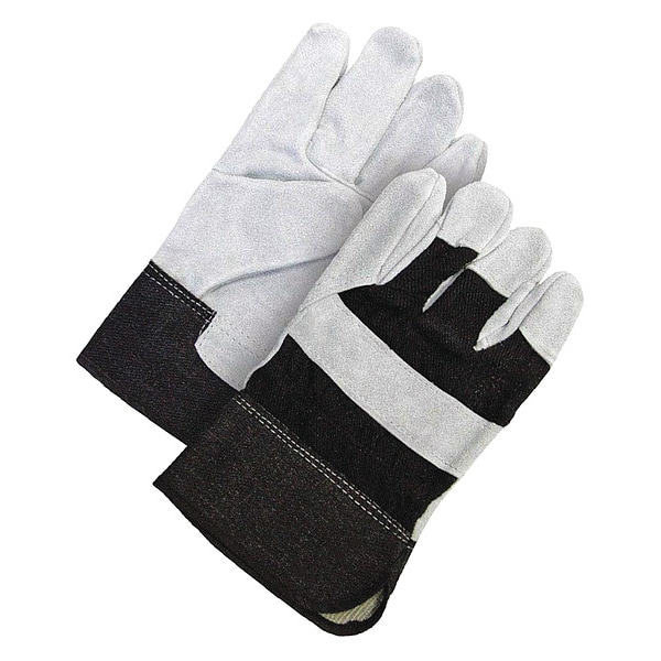 Leather Gloves, Cowhide, Safety Cuff, Wing Thumb, Full Finger, Black/Gray, L, 1 PR