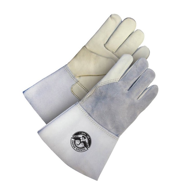 Leather Gloves, Gauntlet Cuff, Wing Thumb, Gray/Tan, S, 1 PR