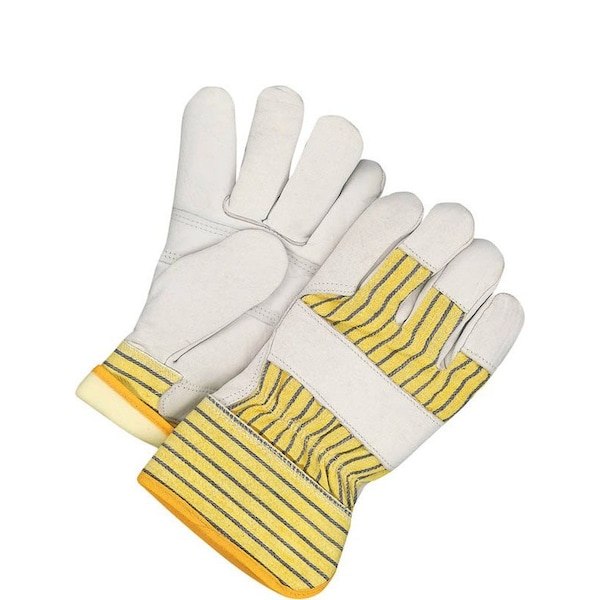 Grain cowhide palm, index finger & fingertips; Cotton backhand with grain leather knuckle strap; C100 Thinsulate insulation; Rubberized safety cuff; Inside elastic wrist; Gunn cut with wing thumb; Patch palm
