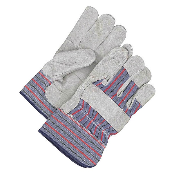 Split Cowhide Leather Gloves, Safety Cuff, Patch Palm, Gunn Cut, Wing Thumb, Large, 1 Pair