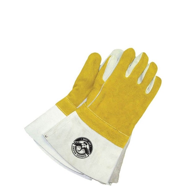 Split cowhide palm & backhand; Flannel palm lining; Heather backhand lining; 5" split cowhide gauntlet cuff w/gore; Gunn cut w/wing thumb; Welted thumb & index finger
