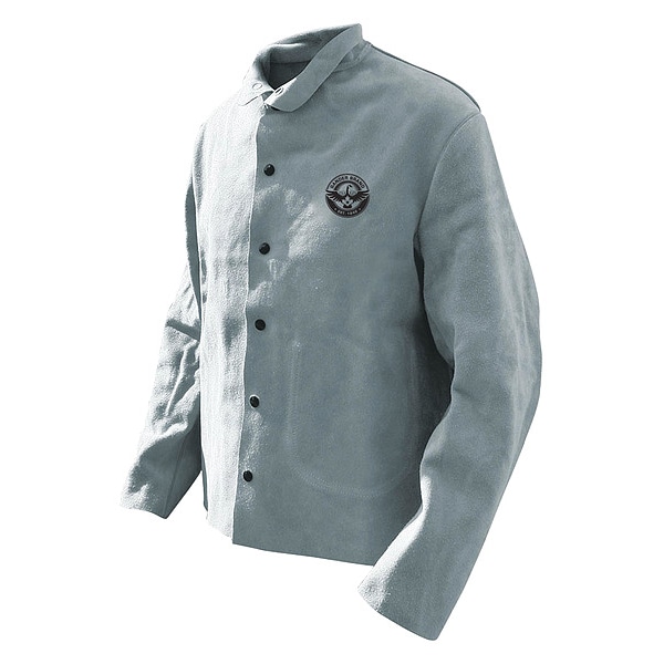 Welding Jacket, Cowhide, Snaps Closure, Inside Pocket Pockets, Gray, 2XL