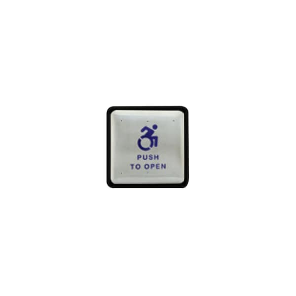 4.75in Square Stainless Steel Push Plate, Blue inPush to Openin Text and Alternate Handicap Logo