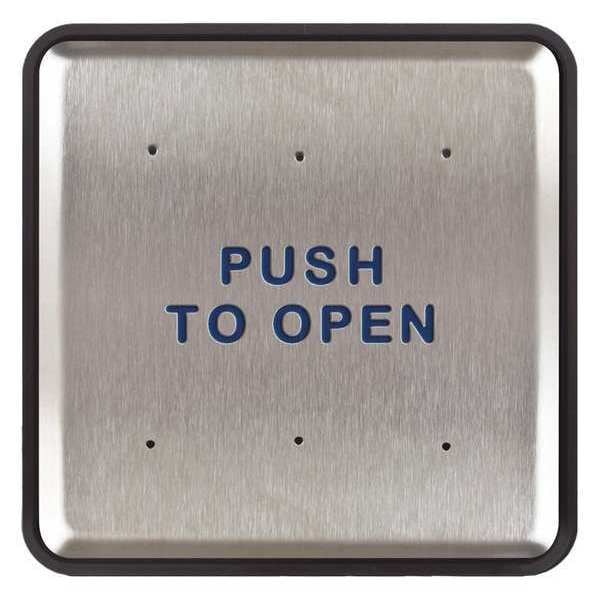 Exit Push Button, Type Square, Switch Action Push Button, Material Aluminum, Stainless Steel, Button Dia. 6 in, Input Voltage Not Applicable, Standards UL Listed, Includes Mounting Boxes, Plates, Exit Device Type Not Applicable, ADA Compliant Yes, Features Wireless Compatibility
