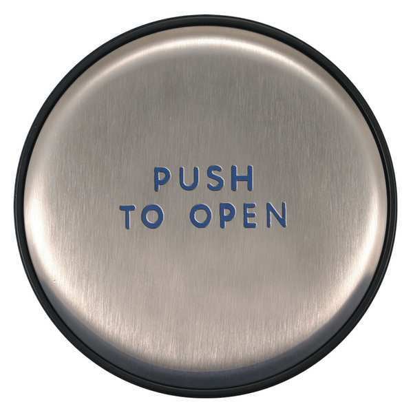 Exit Push Button, Type Round, Switch Action Push Button, Material Plastic, Stainless Steel, Button Dia. 6 in, Input Voltage Not Applicable, Standards FCC IC Part 15 Approved, Includes Push to Open Text, Exit Device Type Not Applicable, ADA Compliant Yes, Features Vandal-Resistant, Weather-Resistant, Wireless Compatibility