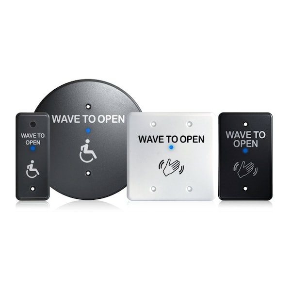 Microwave Touchless Actuator, Choice of accessibility logo or plain in all size options, Text & Hand Logo, Adjustable 4 to 24 In, 12-24 VAC/DC,