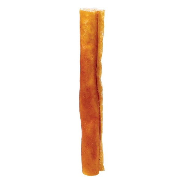 Our pork roll ranges in weight of 1-2 oz and in length of 8". It is a chew recommended for small to medium dogs. It is rolled pork skins, naturally baked with nothing added.