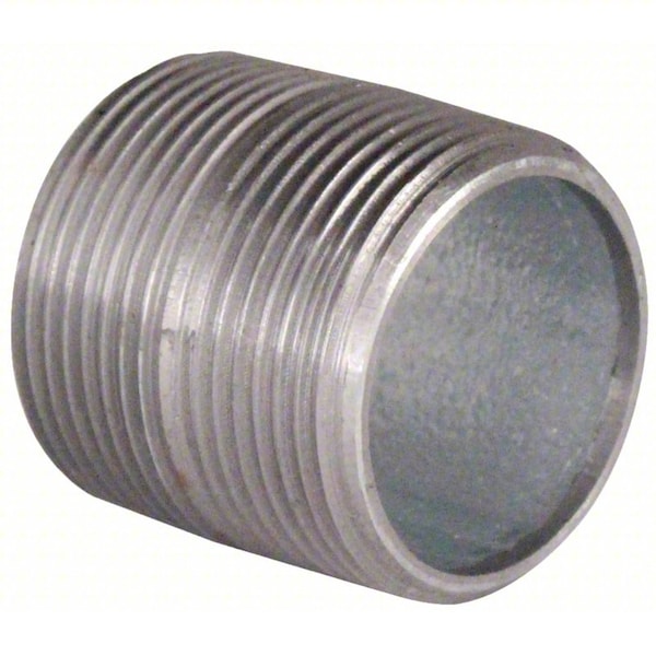 Galvanized Nipple, Application Air, Gas, Potable Water, Finish/Coating Galvanized, Fitting Compatibility Schedule 80, Inside Diameter 35/64 in, Manufacture Location Made in USA*, Material Steel, Material Grade Grade B, Metal Pipe Construction Welded, Nominal Pipe Size 1/2 in, Outside Diameter 27/32 in, Overall Length 2 in, Pipe Weld Type Continuous Weld, Schedule Schedule 80, Side A Connection Type Threaded, Side A Gender Male, Side A Thread Type NPT, Side B Connection Type Threaded