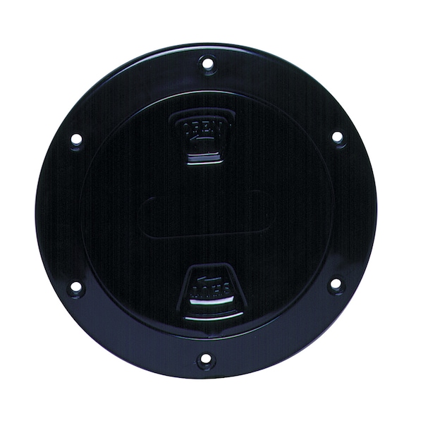 Screw-Out Deck Plate The Beckson Screw-Out Plate was designed to provide access without the use of tools, with a single start non-jamming (no cross-thread), extra strong, self-cleaning buttress thread. They incorporate a self-aligning center and an innovative gasket to assure a watertight seal. A back-up sealing wall leaves the plate watertight, even if the gasket is removed. Deck plates are used for access to shut-off valves or back-fastenings, inspection, and clean out for tanks and compartments. A screw-out plate should be used in compartments where a change in air pressure due to temperature or oil canning can occur. Center: Smooth Color: Black
