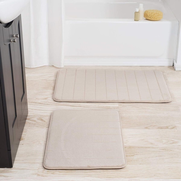 Bedford Home 67A-77408 2 Piece Memory Foam Striped Bath Mat; Ivory (Discontinued)